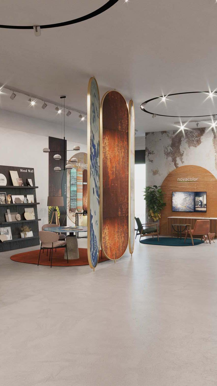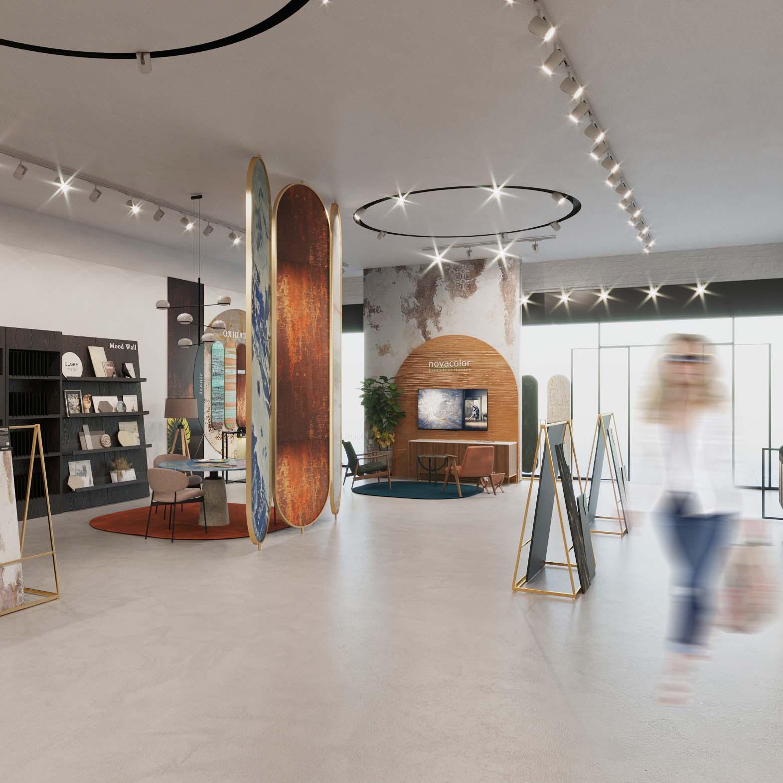 El nuevo formato de la sala de exposiciones de Novacolor es la traducción del diseño decorativo en un espacio de venta diseñado para impresionar pero también para generar volumen de negocio. Con esta visión, el concepto se desarrolla a través de componentes bien codificados y personalizados con las características de la marca Novacolor.