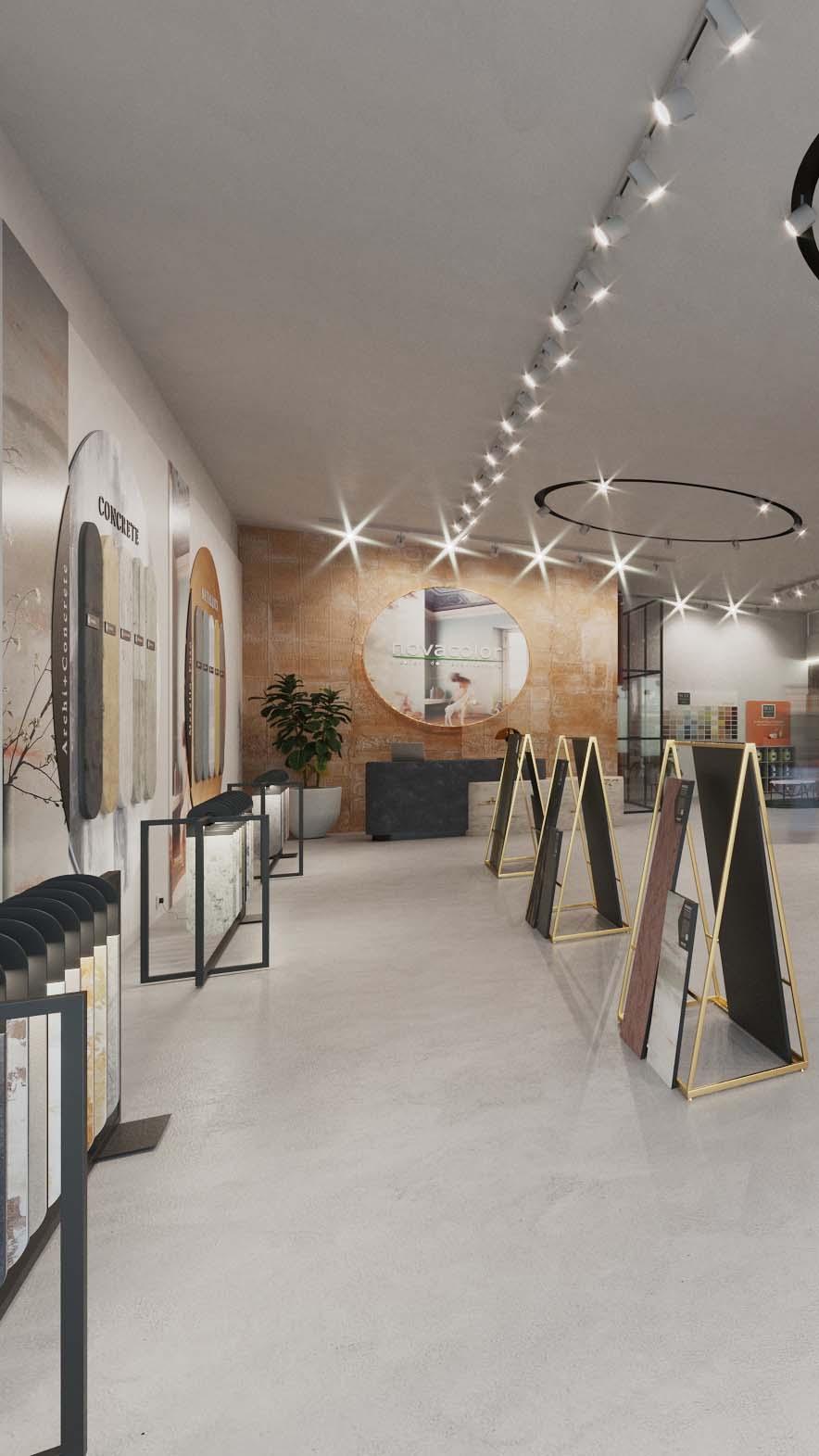 Se han ideado niveles de comunicación progresivos para guiar a los clientes a través de su experiencia de compra, gracias a los gráficos que dividen la sala de exposición en categorías homogéneas de producto. Esta división es flexible y tiene en cuenta las contaminaciones imprescindibles entre los distintos productos Novacolor. Todo en el nuevo formato es claro y codificado, a excepción de la expresión artística de Novacolor, que sigue siendo el componente clave que realza el atractivo de la sala de exposiciones.